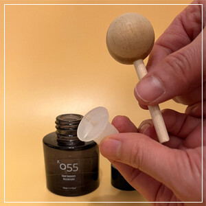 4. 용기의 블랙캡을 닫아 준 후 우드볼 리드를 꽃아주세요