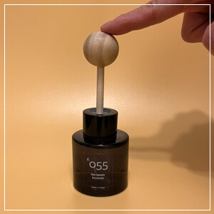 3. 우드볼 리드의 흰색 고정 마개를 디퓨져 용기에 꽂아주세요
