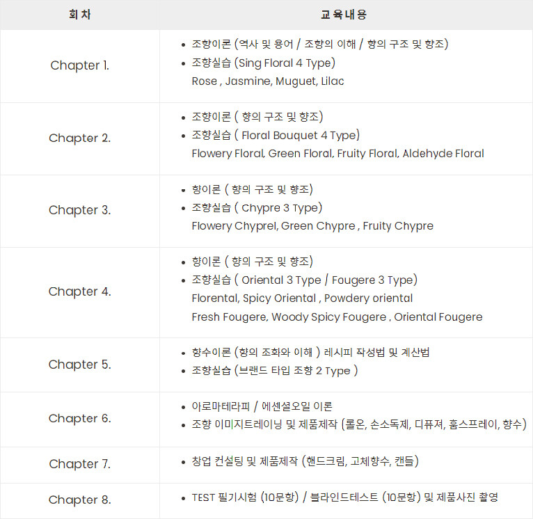 KPIA 조향사자격증, 퍼퓸마스터클래스, 향수공방창업과정