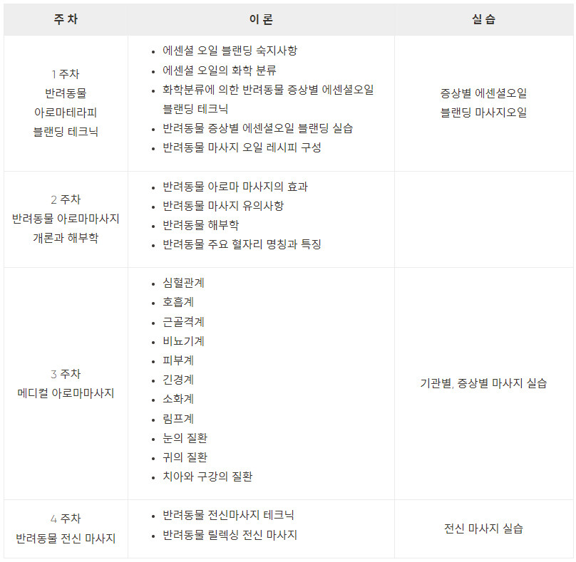반려동물 펫 아로마테라피 1급과정은