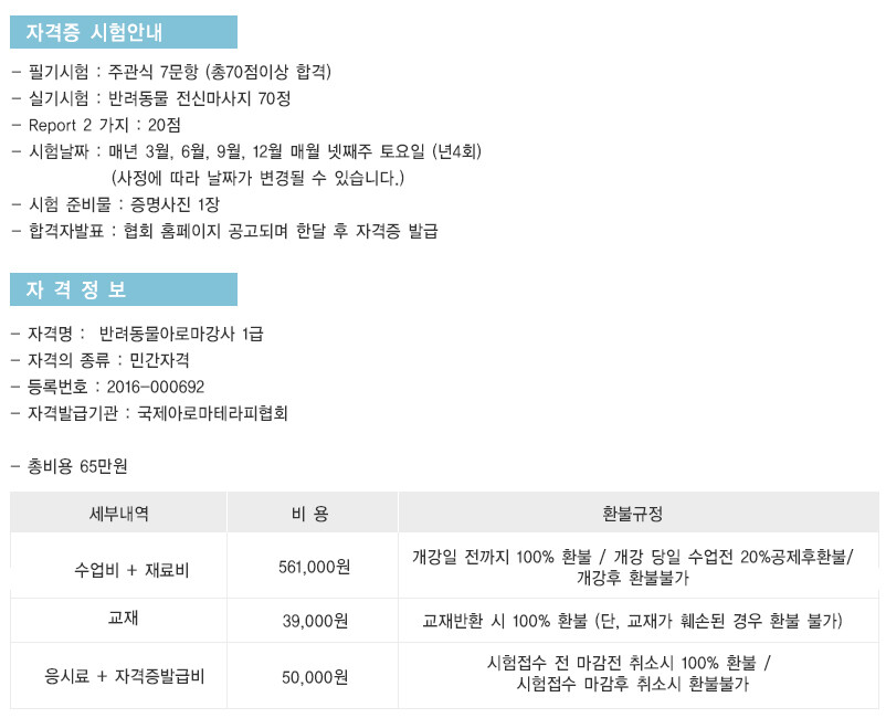 반려동물 아로마테라피 1급 과정은